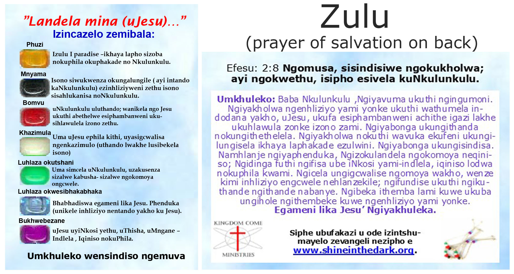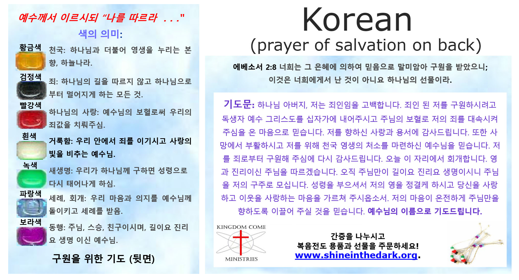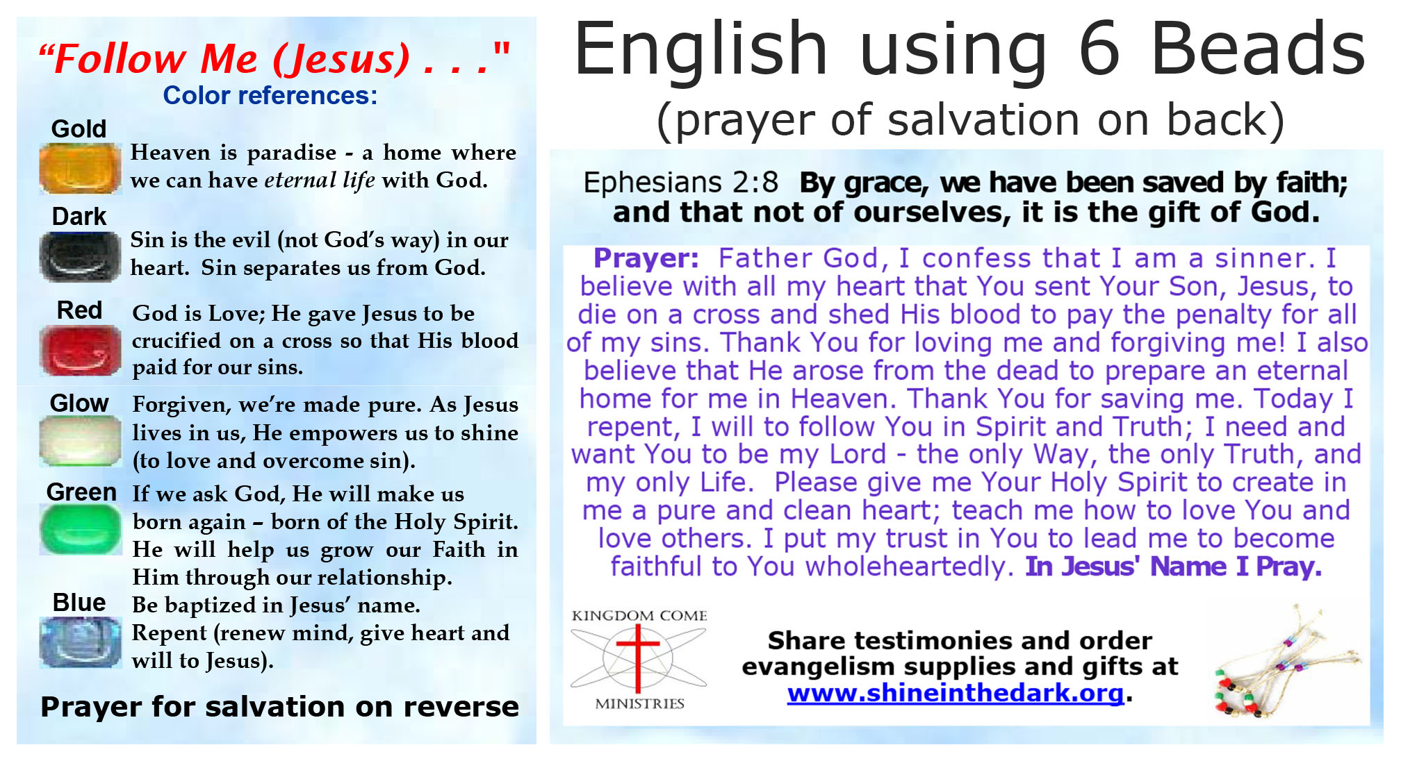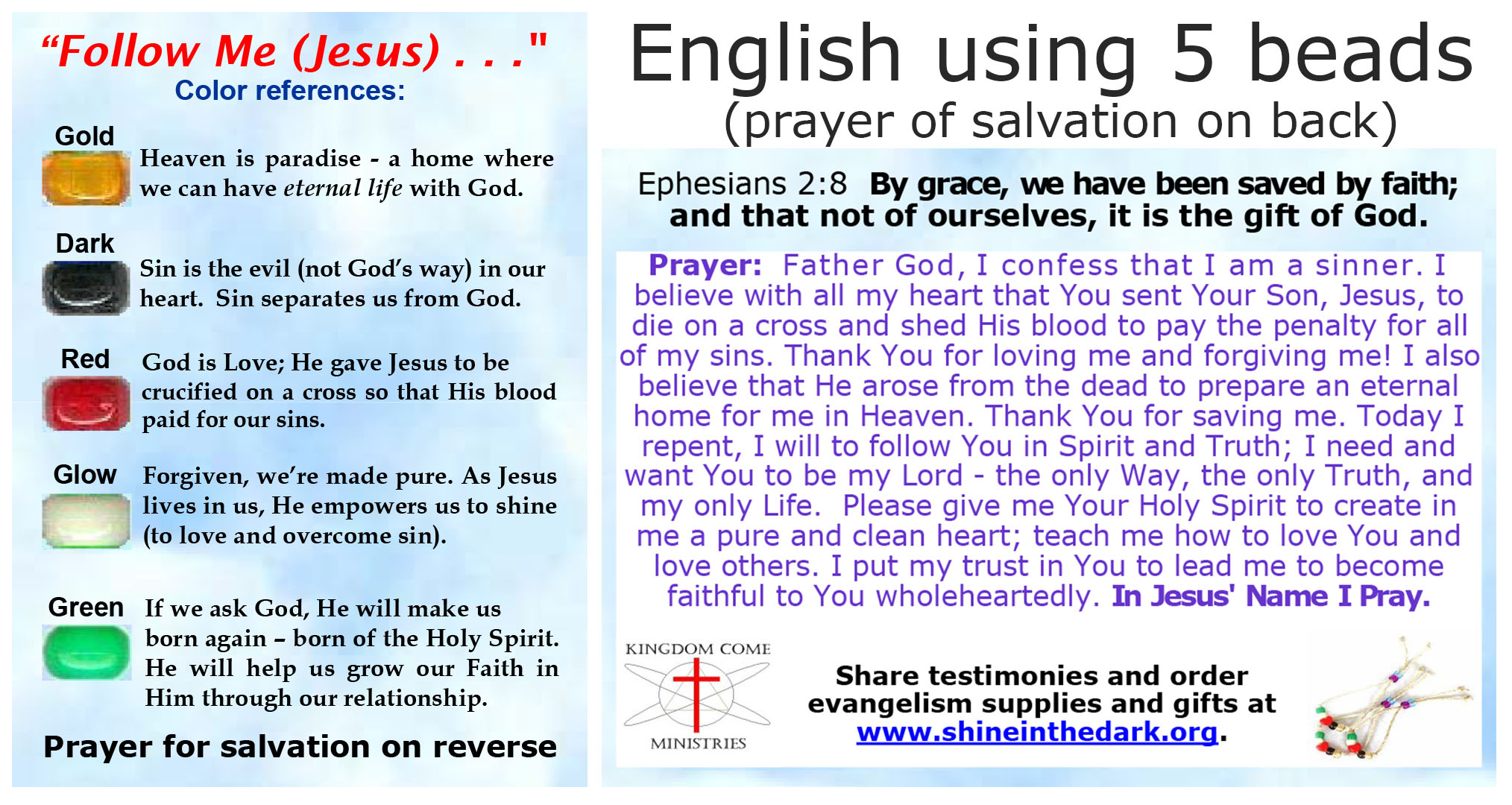 Message Cards for Salvation Key Rings and Zipper Pulls using only 5 or 6 Beads are available only in English.